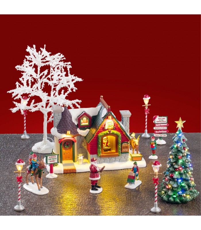 LEMAX VILLAGE COLLECTIONBienvenidos a la Cabaña de Repostería de Papá Noel, el lugar más dulce del País de las Maravillas Navideñas. Disfruta de cupcakes de chocolate y dulces festivos; el aroma a canela y cacao te envolverá. Afuera, niños prueban vuelos de renos en la nieve, llenos de alegría. Y gracias a los elfos, que aseguran que sus regalos lleguen a tiempo.